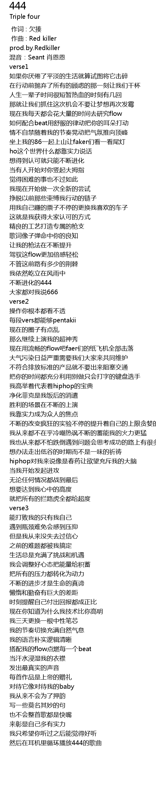 | [01:05.068] | 不断进化的444 |