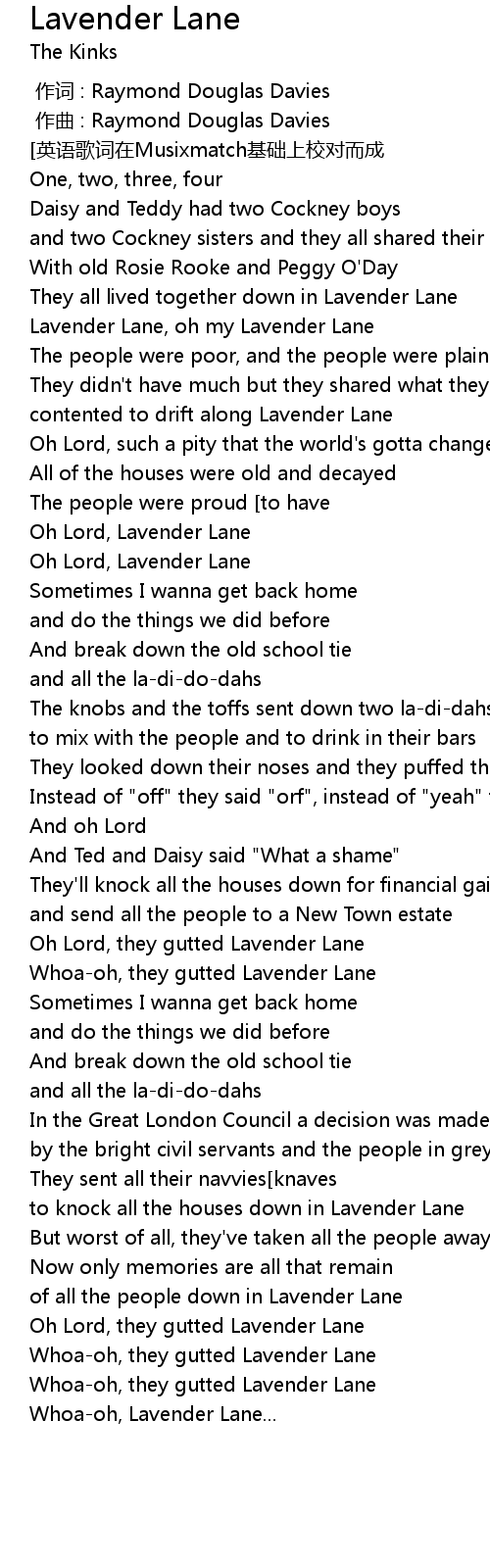 | [01:04.22]The people were proud [to have] | lived in Lavender Lane |