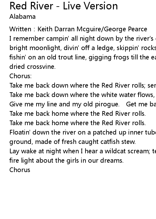 | Take me back down where the Red River rolls send me back to Lou' sianne. | |