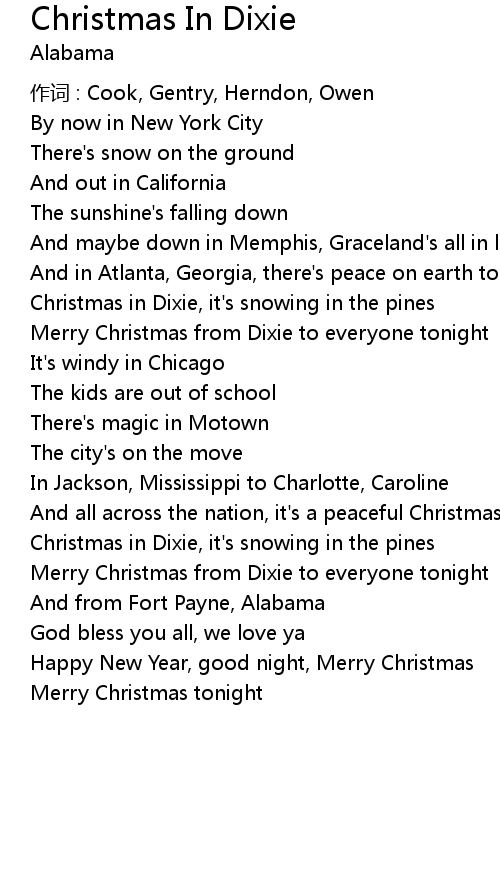 | Christmas in Dixie, it' s snowing in the pines | |