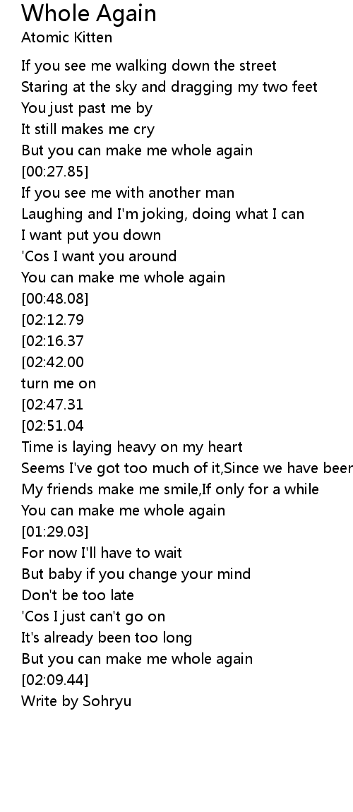 But you can make me whole again |