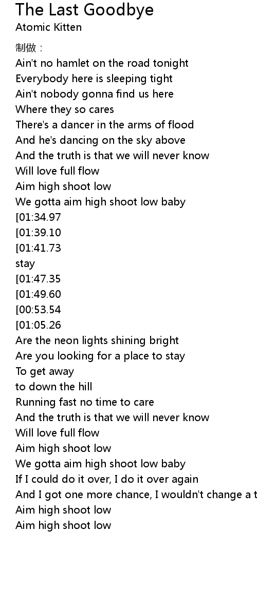 | [01:30.83] | We gotta aim high shoot low baby |