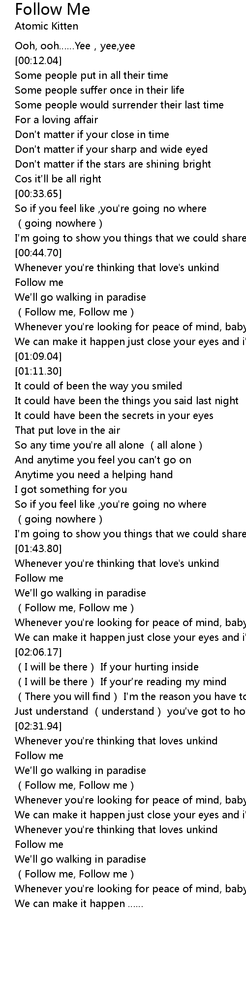 | [03:02.00] | (Follow me, Follow me) |