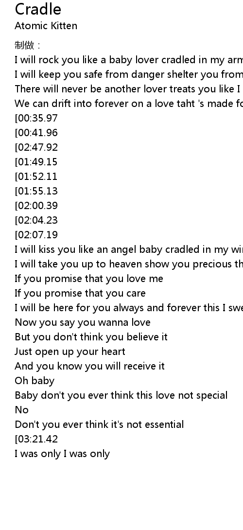 | [00:11.95] | I will rock you like a baby lover cradled in my arms |