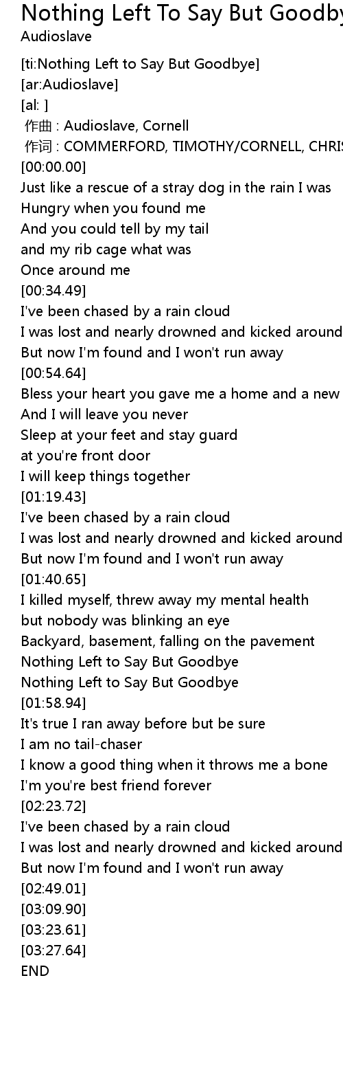 | [01:50.34] | Nothing Left to Say But Goodbye |