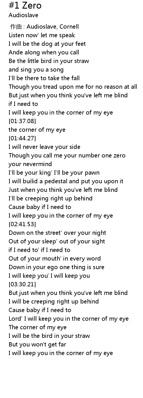 | [00:00.00] | 作曲 : Audioslave, Cornell |