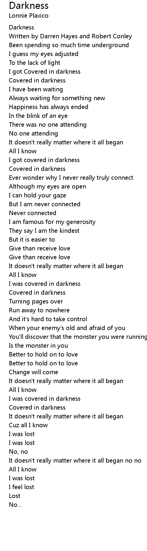 I got Covered in darkness |