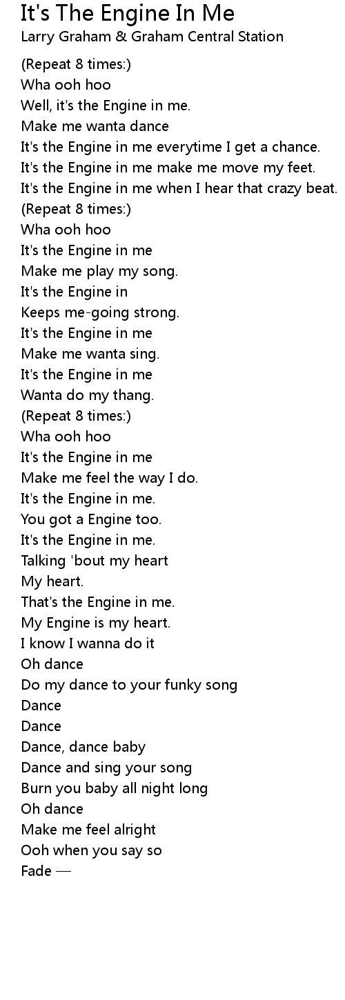 | It' s the Engine in me make me move my feet. | |