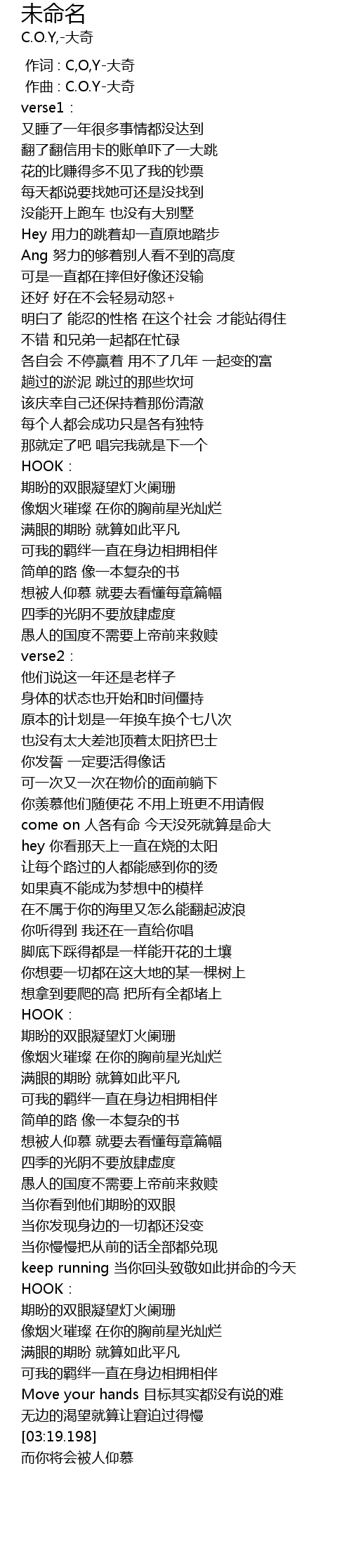 | [00:01.000] | 作曲 : C.O.Y-大奇 |