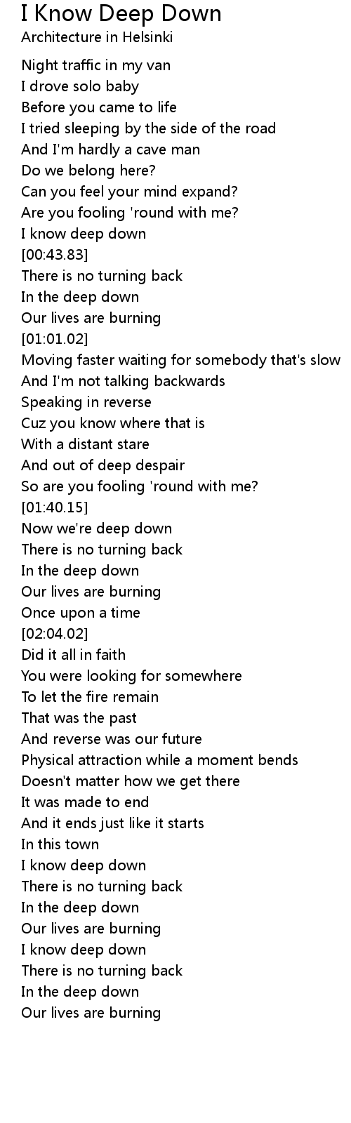 I know deep down |