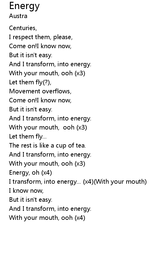 | And I transform, into energy. | |