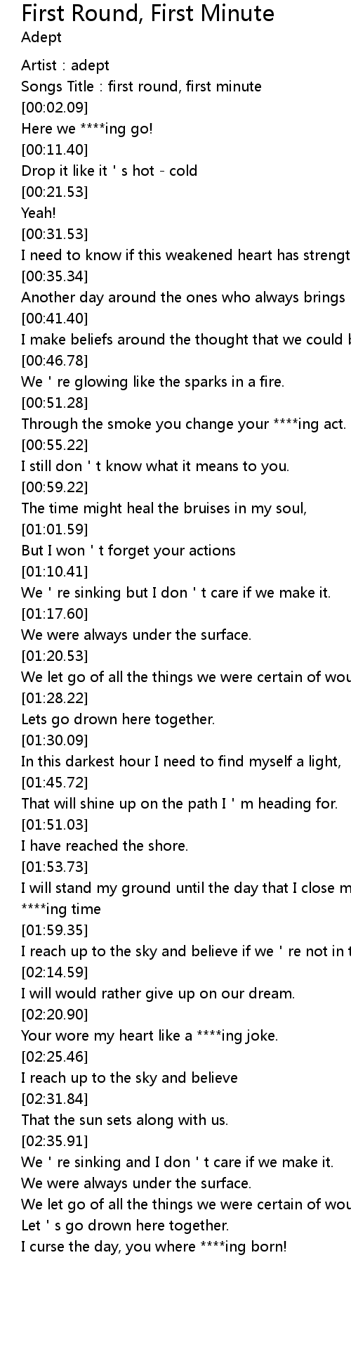 | [00:54.03] | Through the smoke you change your ****ing act. |