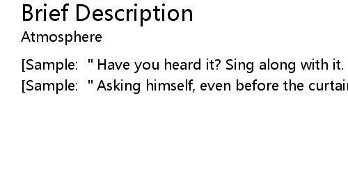 | [Sample: "Asking himself, even before the curtain goes up, what am I? |