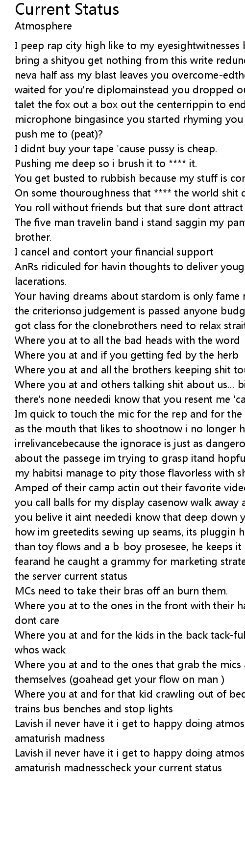 Lavish il never have it i get to happy doing atmospheric damage to your amaturish madnesscheck your current status |