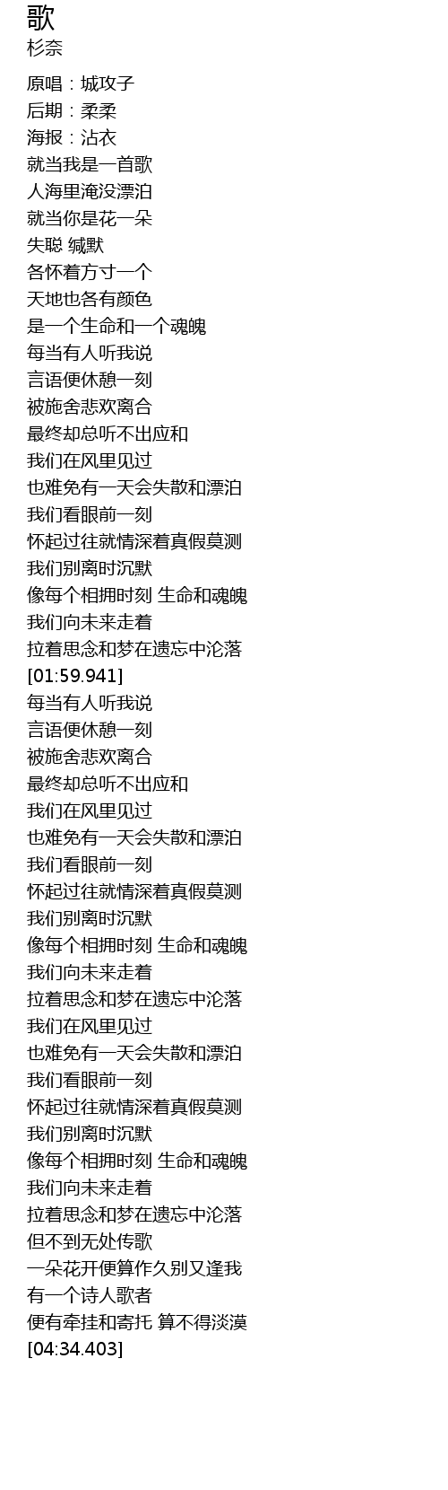 | [04:17.345] | yǒu yí gè shī rén gē zhě |
