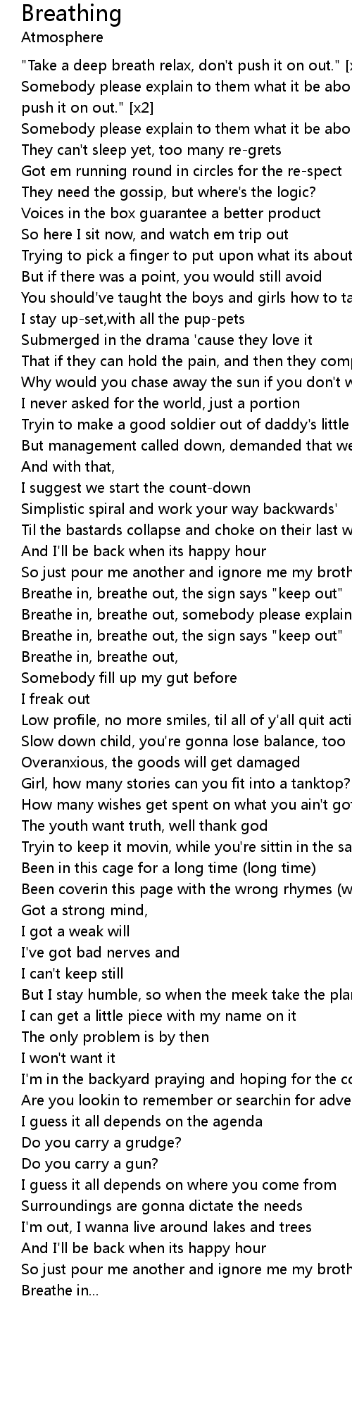 Breathe in, breathe out, somebody please explain to them what it be about |