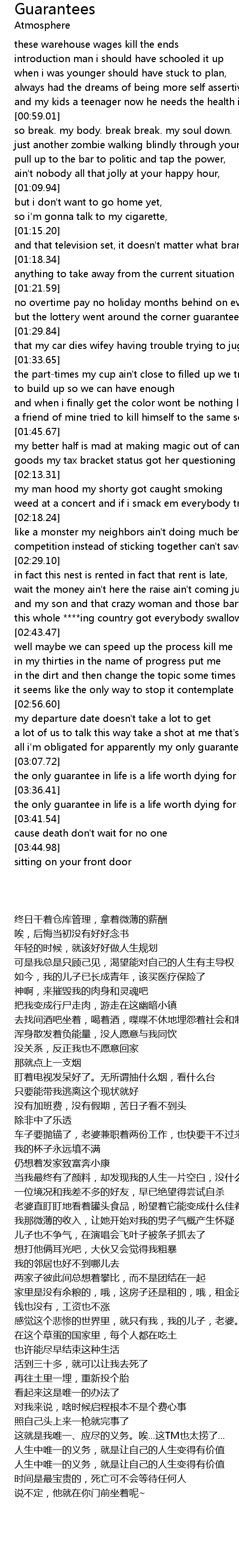 all i'm obligated for apparently my only guarantee is a walk away |