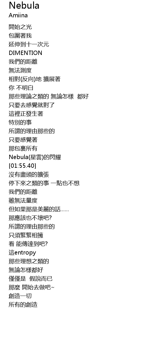 | [01:48.67] | Nebula(星雲)的閃耀 |