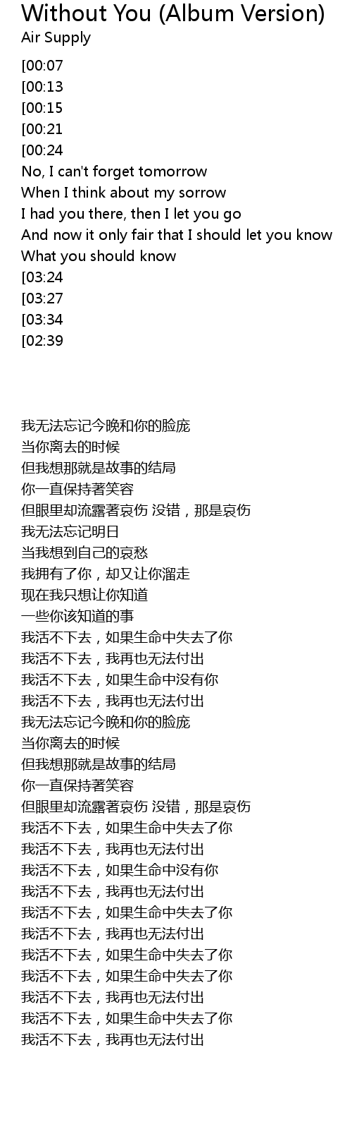 | [03:24] | 我活不下去,如果生命中失去了你 |