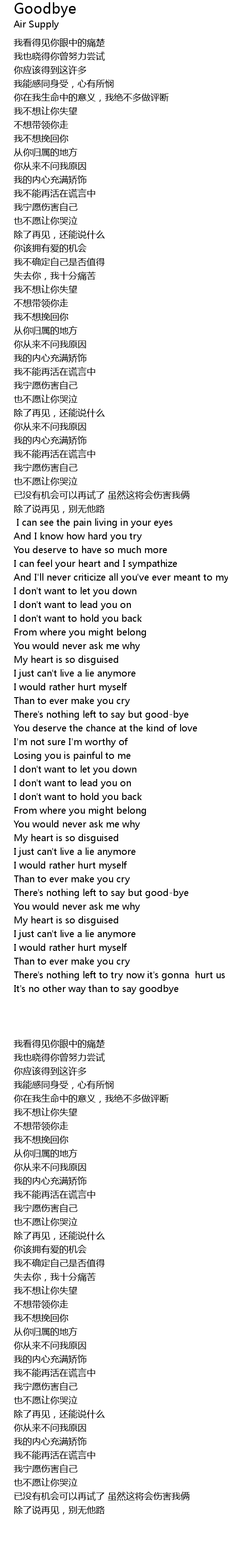 | 歌曲 | Goodbye |