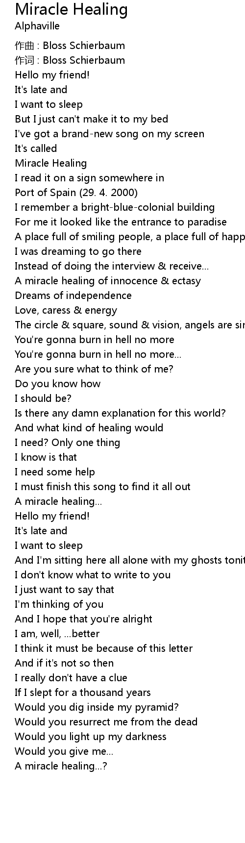 | 歌曲 | Miracle Healing |