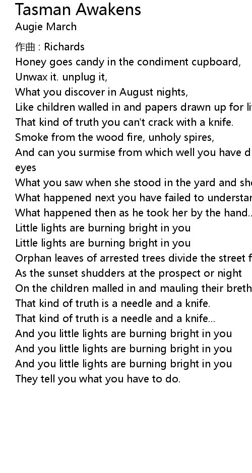 | 歌曲 | Tasman Awakens |