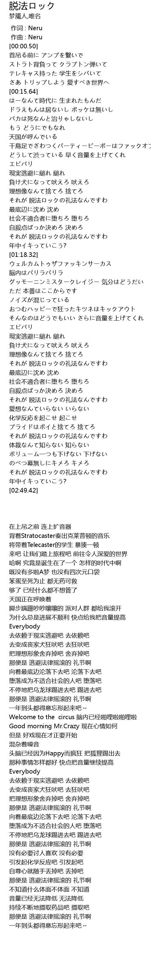 | [00:00.025] | zuò qǔ : Neru |
