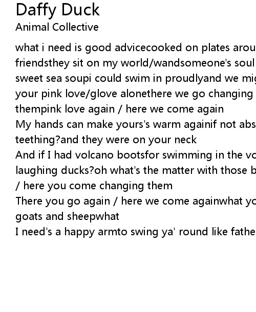 what i need is good advicecooked on plates around merubber hands and silly friendsthey sit on my world/wandsomeone's soul a sweet sea snow / someone sow a sweet sea soupi could swim in proudlyand we might swim like laughing ducksin your pink love/glove alonethere we go changing again / here we come changing thempink love again / here we come again |