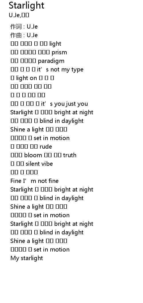 | [00:45.541] | Starlight 내 마음은 bright at night |