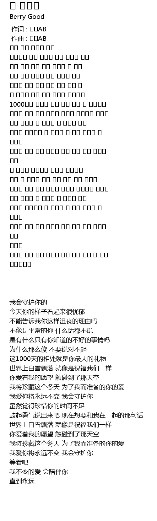 | [01:34.271] | 변하지 않아 너를 사랑해 워허 내가 너를 지켜줄 거야 |