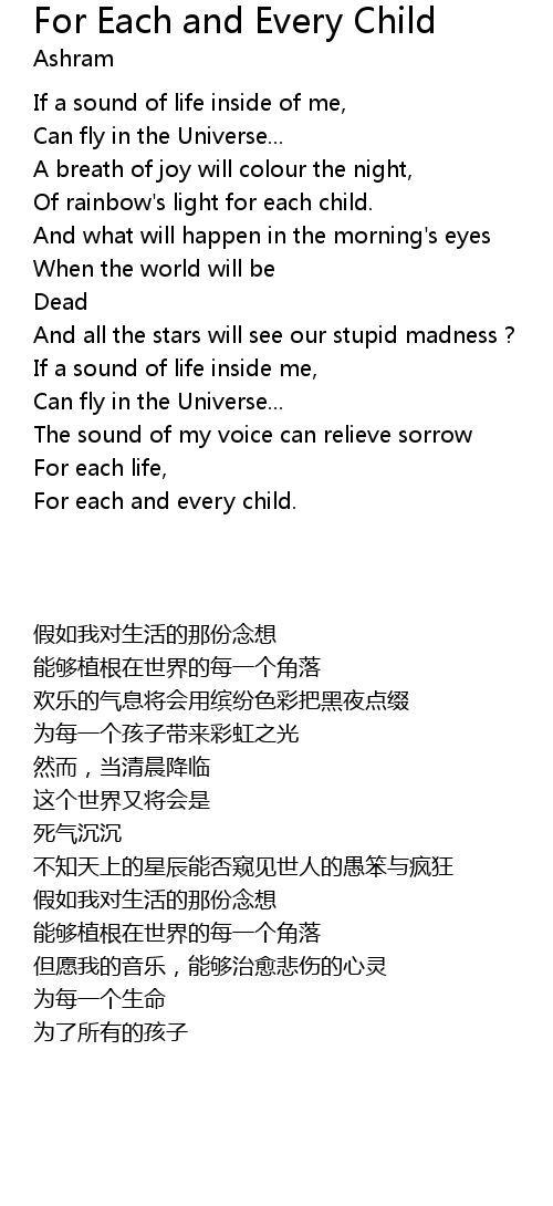 | 歌曲 | For Each and Every Child |