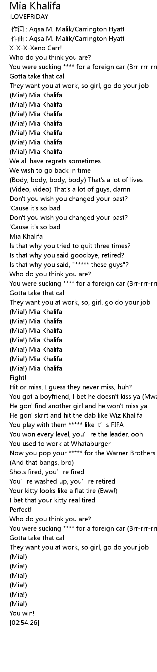 | [00:26.80] | Mia! Mia Khalifa |