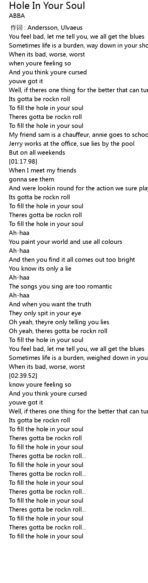 | [02:16.31] | Oh yeah, theres gotta be rockn roll |