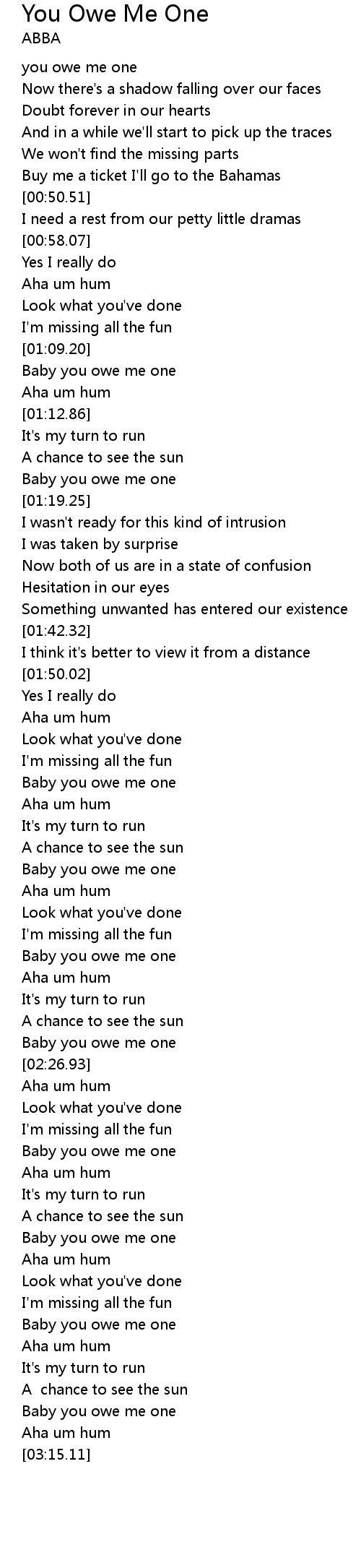 Baby you owe me one |