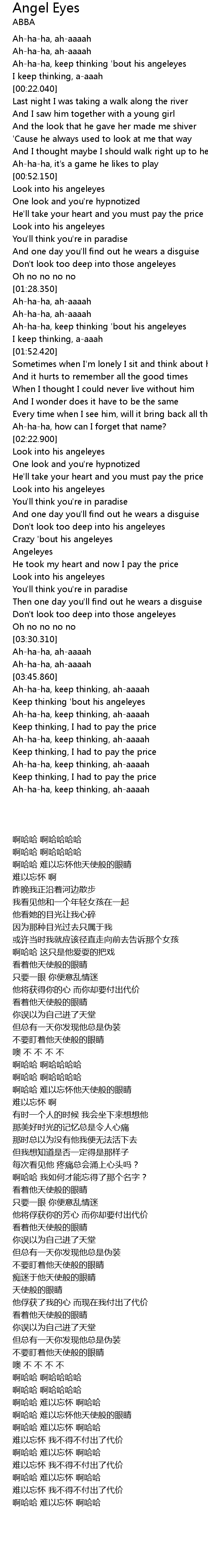 [00:14.160] Ah-ha-ha, keep thinking 'bout his angeleyes