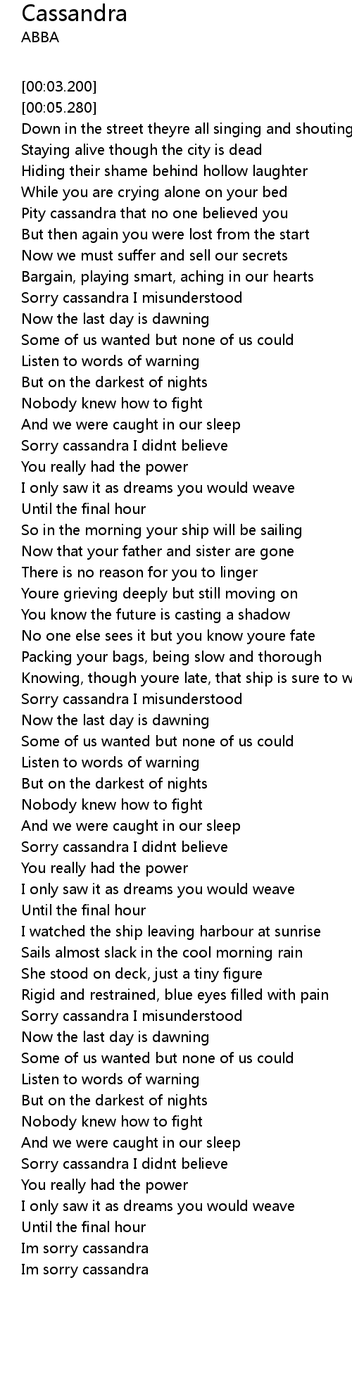 | [01:20.300] | Sorry cassandra I didnt believe |