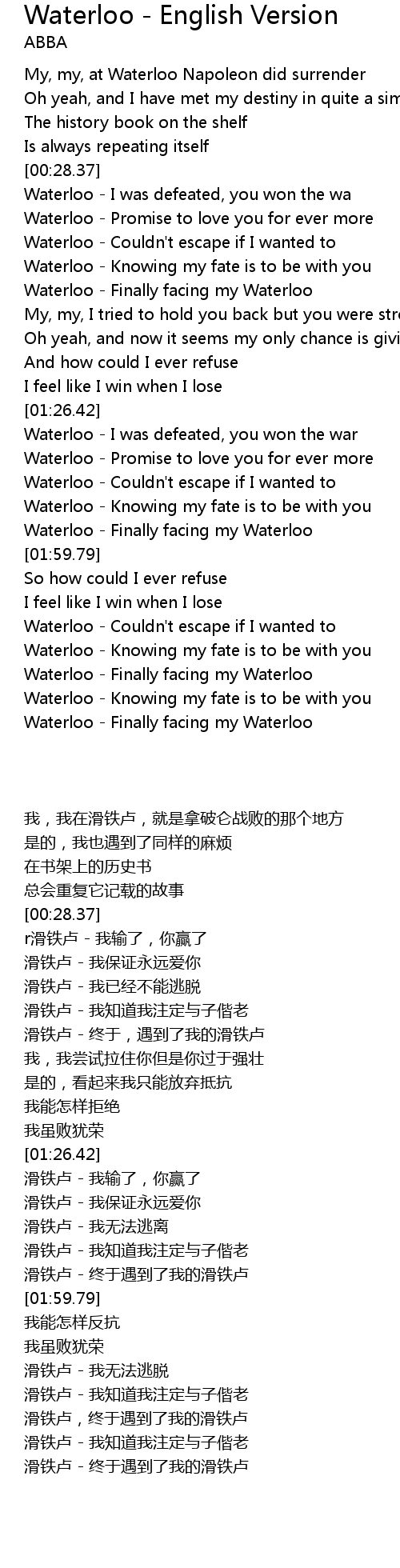 Waterloo - I was defeated, you won the wa |