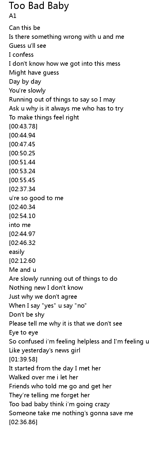 Too bad baby think i'm going crazy |