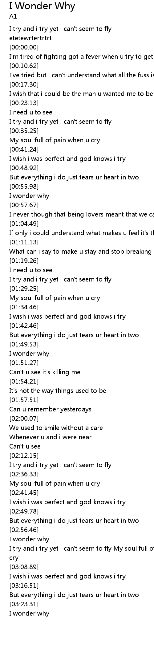 I try and i try yet i can't seem to fly My soul full of pain when u cry |