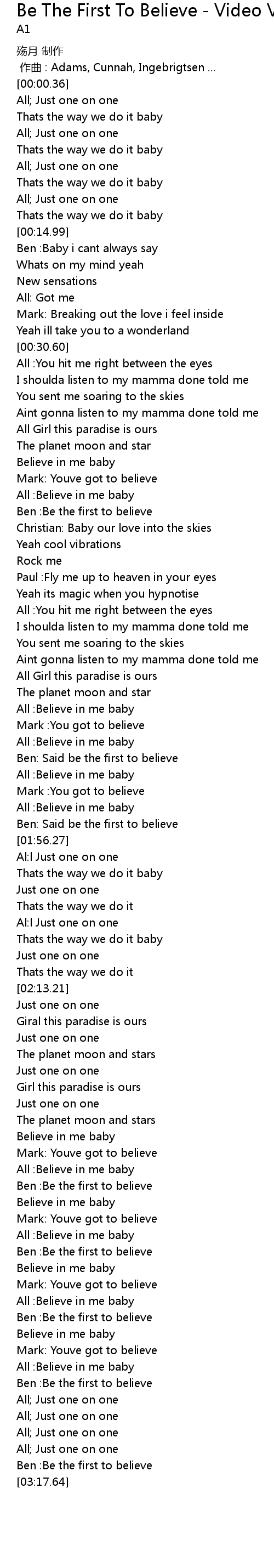 | [00:56.34] | All :Believe in me baby |