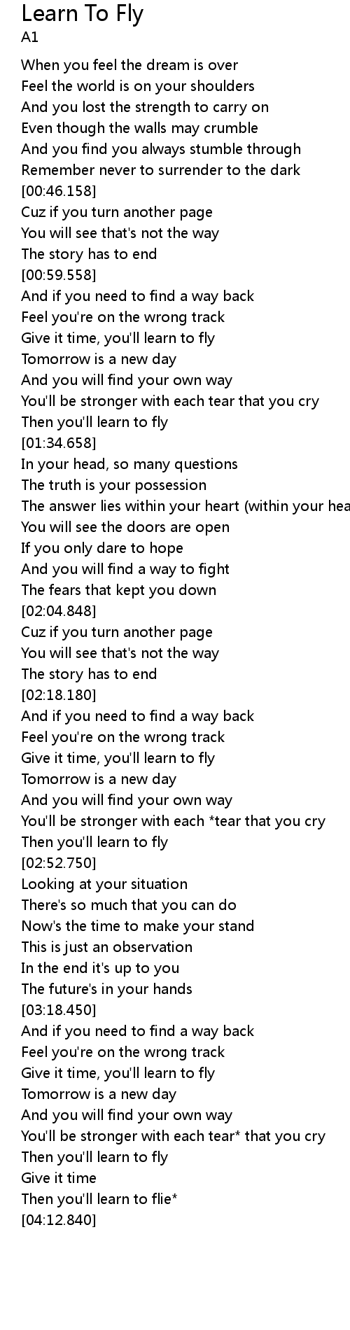| [02:25.800] | Give it time, you' ll learn to fly |