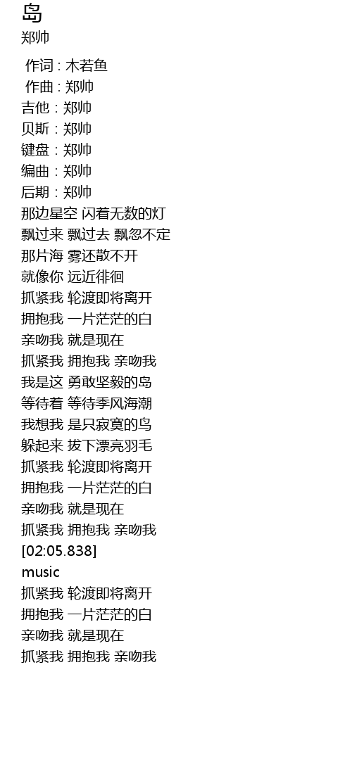 | [00:01.839] | 吉他:郑帅 |