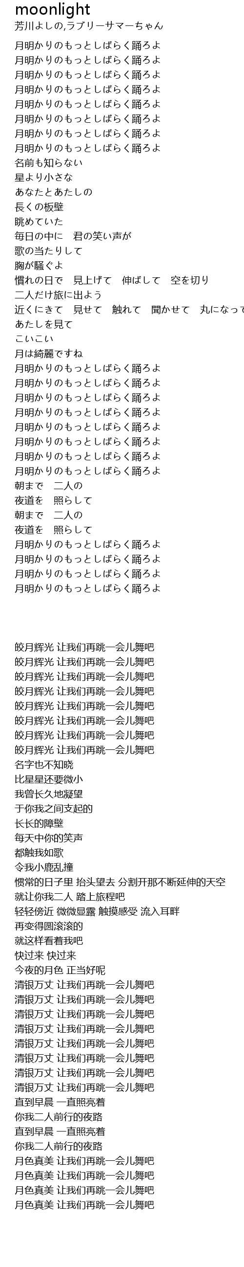 | [00:14.76] | 月明かりのもっとしばらく踊ろよ |