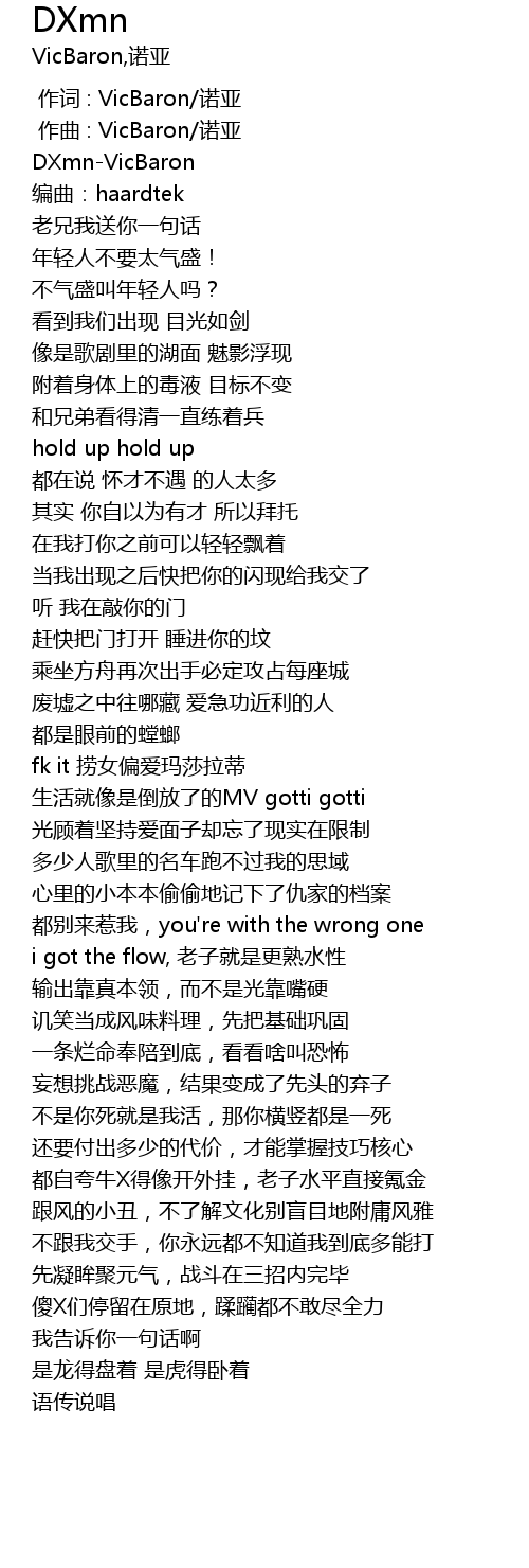 | [00:00.000] | 作词 : VicBaron/诺亚 |