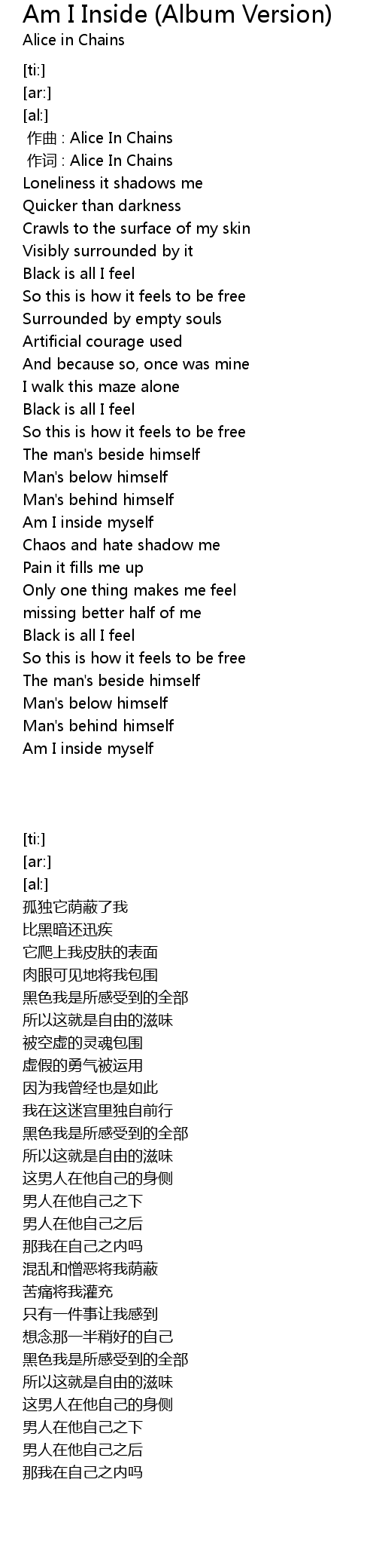 | [00:01.00] | zuò cí : Alice In Chains |