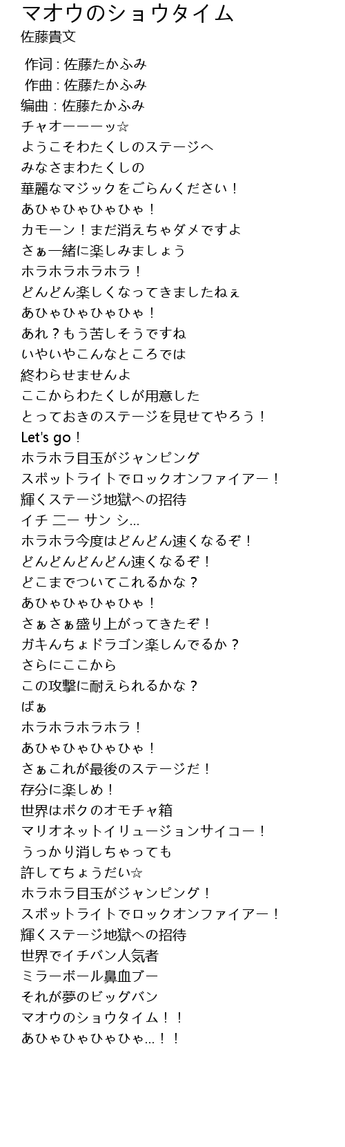 | [00:00.000] | 作词 : 佐藤たかふみ |
