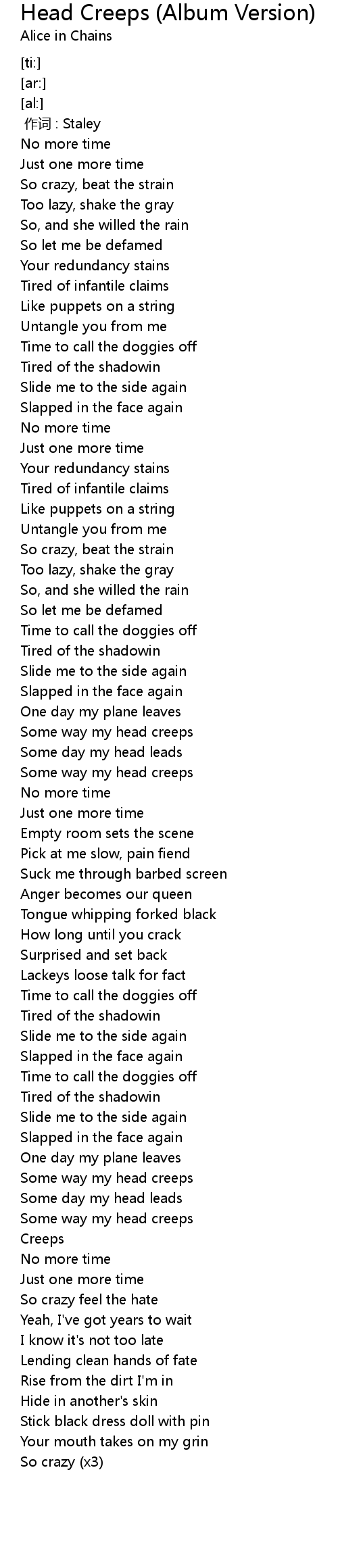 | 歌曲 | Head Creeps (Album Version) |