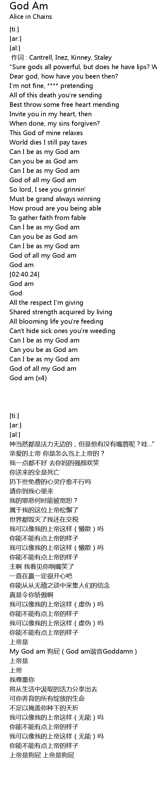| [02:40.24] | My God am 狗屁(God am谐音Goddamn) |