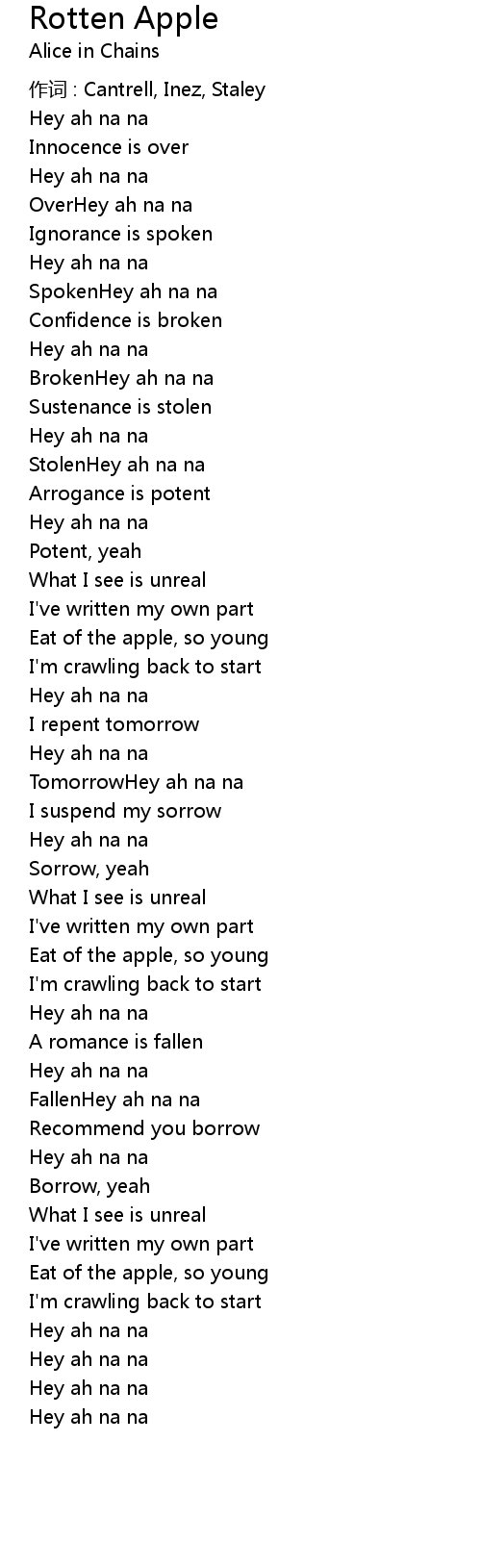 | 作词 : Cantrell, Inez, Staley | |