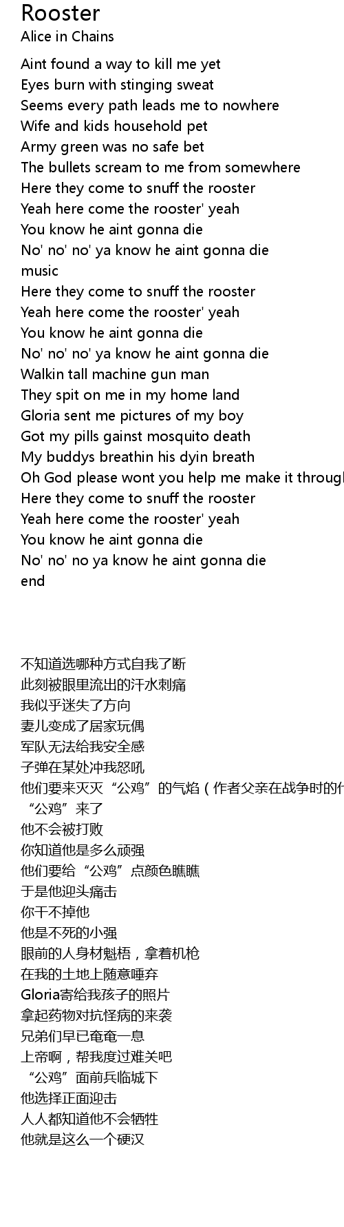 Yeah here come the rooster' yeah |